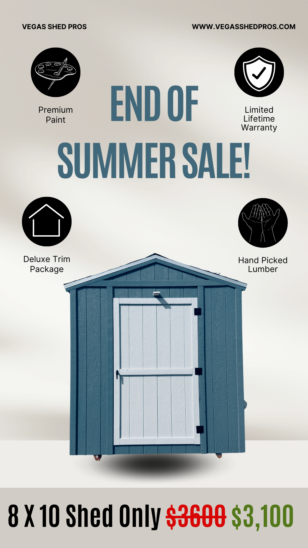Determining the maximum shed size for your Las Vegas property depends on several factors, including your overall lot size and any existing structures in your backyard. Additionally, your Homeowners Association (HOA) may have specific regulations regarding shed sizes. We will work with you to assess your property and research any applicable local and HOA guidelines to help you determine the maximum allowable size for your new storage shed.